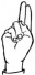 На ћирилици написано ИВА ПАВИН састоји се из 8 слова [?]. Исписано ћириличном једноручном азбуком за глувонеме: